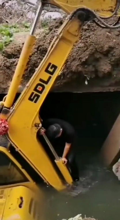 挖機(jī)側(cè)翻,幸好有棵樹!